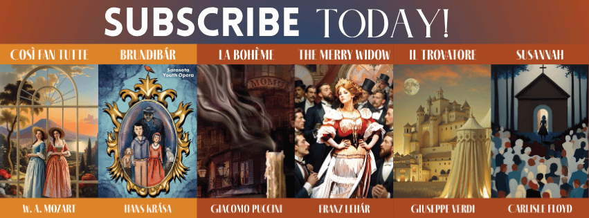PRIVACY POLICY CONTACT US Sarasota Opera, 61 N Pineapple Ave., Sarasota, FL 34236, United States Ticket Sales 941-328-1300 | © 2024 SarasotaOpera.org
